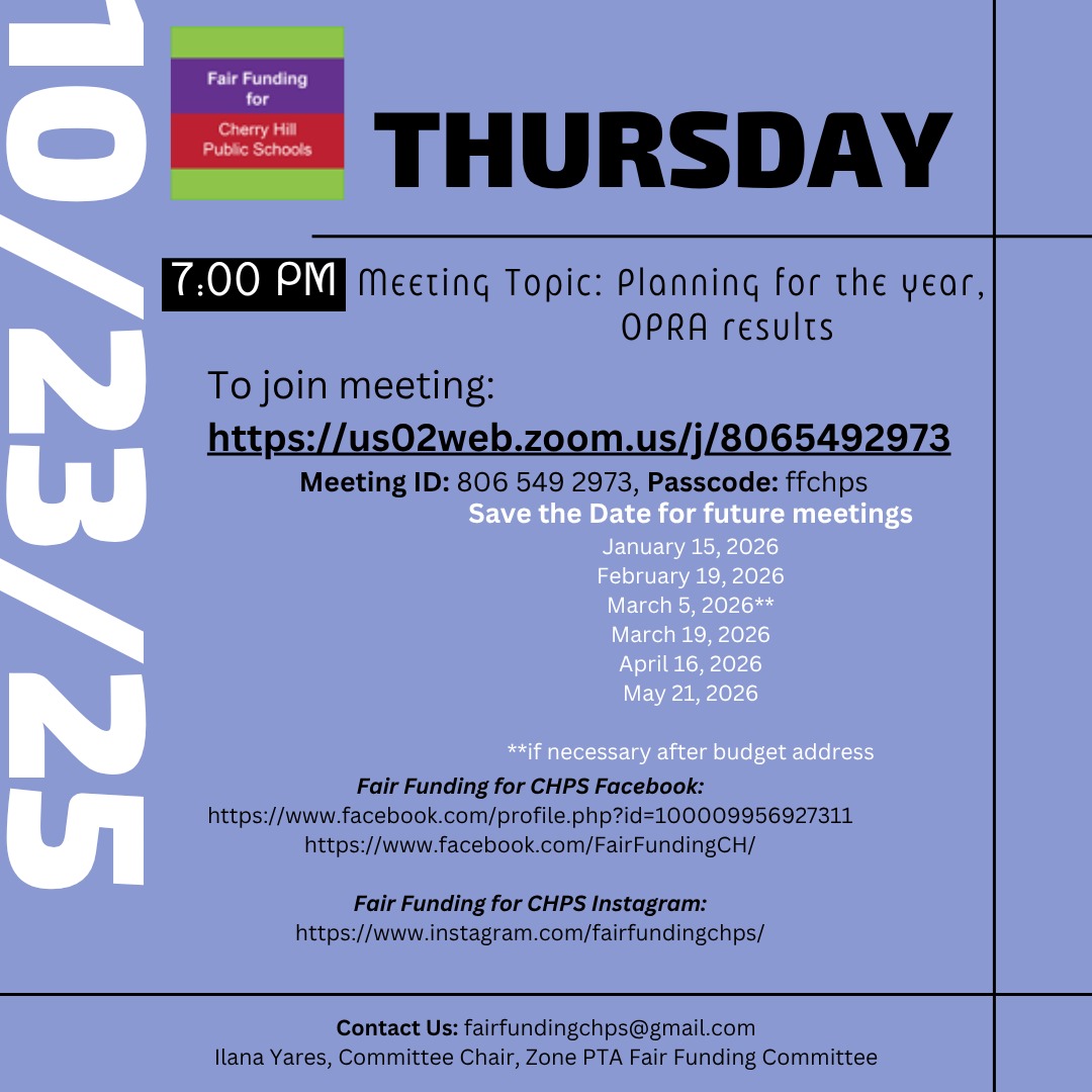 We need a parent representative from our school community to attend the virtual Fair Funding Committee Meeting on Thursday, 10/23 at 7pm.